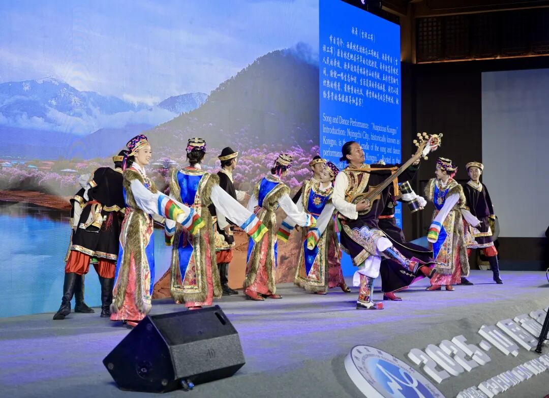 開(kāi)幕式在《吉祥工布》的旋律中拉開(kāi)了序幕。舞者們身著色彩斑斕的工布服飾,仿佛從雪山深處走來(lái)的精靈,正以熱情的舞步迎接八方賓客,每一個(gè)轉(zhuǎn)身、跳躍都充滿(mǎn)了對(duì)遠(yuǎn)道而來(lái)客人的真摯歡迎。