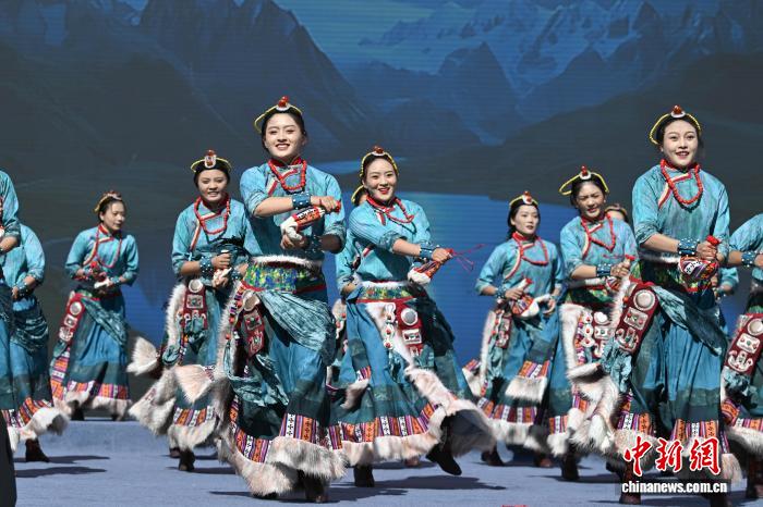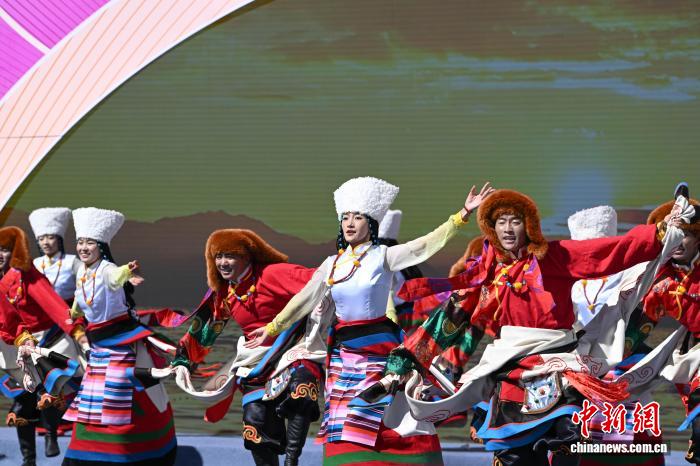 圖為阿里地區(qū)改則縣藝術(shù)團表演舞蹈《歡舞幸福·改則情》。中新社記者 貢嘎來松 攝