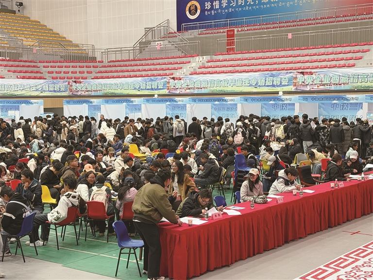 就業(yè)援藏,是保障和改善民生的頭等大事。依托央企就業(yè)援藏機制,西藏自治區(qū)教育廳高校畢業(yè)生就業(yè)指導(dǎo)服務(wù)中心聯(lián)合國務(wù)院國資委中智集團、自治區(qū)國資委,經(jīng)過多輪磋商座談,精準選定4所高校作為宣講站點,將優(yōu)質(zhì)央企資源直接送到西藏高校畢業(yè)生身邊,組織了此次專場招聘會。