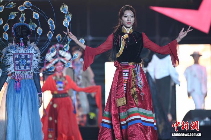 圖為西藏首屆民族舞臺(tái)服飾設(shè)計(jì)大賽決賽現(xiàn)場。中新社記者 貢嘎來松 攝