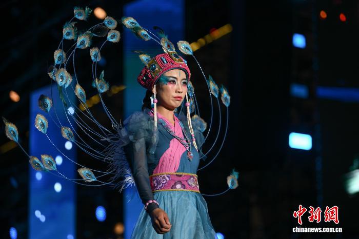 圖為西藏首屆民族舞臺服飾設(shè)計大賽現(xiàn)場。貢嘎來松 攝