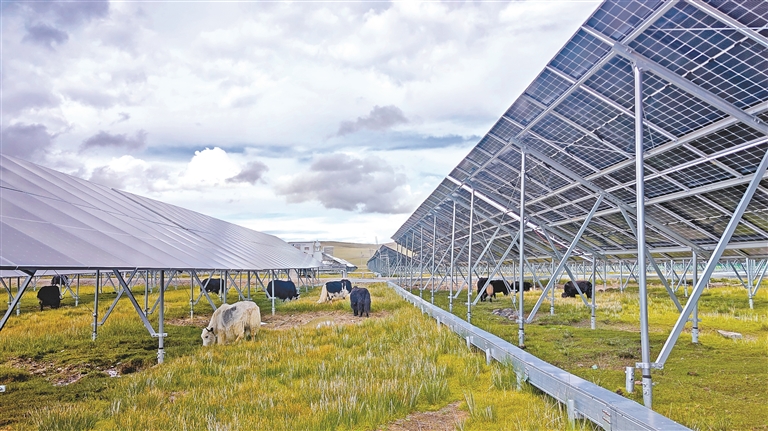 記者了解到,那曲市充分結(jié)合牧業(yè)發(fā)展實(shí)際情況,以“牧光互補(bǔ)”的形式新建光伏項(xiàng)目,將光伏板高度設(shè)置不低于1.8米,不擠占草地,便于牛羊等牲畜覓食休憩,確保放牧與發(fā)電“兩不誤”,促進(jìn)光伏與畜牧業(yè)高度融合發(fā)展,不僅高效利用了土地資源,而且對(duì)帶動(dòng)群眾增收、推進(jìn)鄉(xiāng)村振興產(chǎn)生了示范作用。