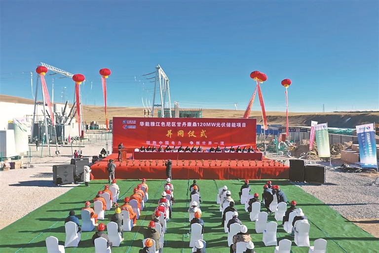 華能雅江色尼區(qū)甘丹康桑120MW光伏儲(chǔ)能項(xiàng)目并網(wǎng)儀式現(xiàn)場(chǎng)(資料圖片)。圖片由那曲市能源局提供