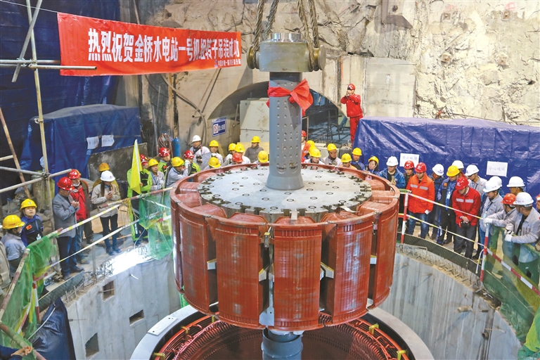 那曲易貢藏布金橋水電站一號(hào)機(jī)組轉(zhuǎn)子吊裝現(xiàn)場(chǎng)(資料圖片)。圖片由那曲市能源局提供
