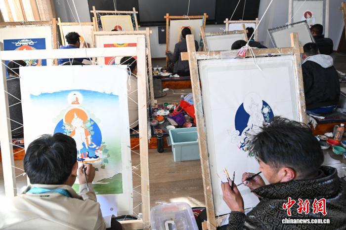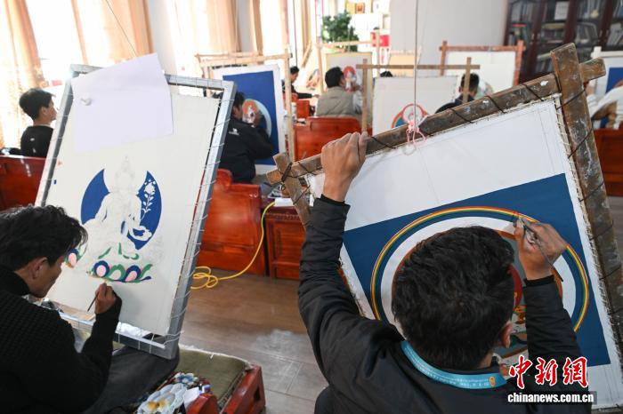11月23日,第二屆“工巧杯”西藏工藝美術(shù)中青年高技能人才技藝大賽現(xiàn)場(chǎng)實(shí)操技能在拉薩市唐卡藝術(shù)博物館開(kāi)賽。本次大賽以“薪火相傳 守正創(chuàng)新”為主題,由284名選手來(lái)自西藏6(市)地的42個(gè)縣(區(qū)),涵蓋唐卡、雕塑、編織等36類工藝。據(jù)悉,西藏工藝美術(shù)行業(yè)現(xiàn)有2700余家市場(chǎng)主體、3.7萬(wàn)余名從業(yè)者,2024年產(chǎn)值超30億元(人民幣)。圖為參賽選手在畫(huà)唐卡。中新社記者 貢嘎來(lái)松 攝