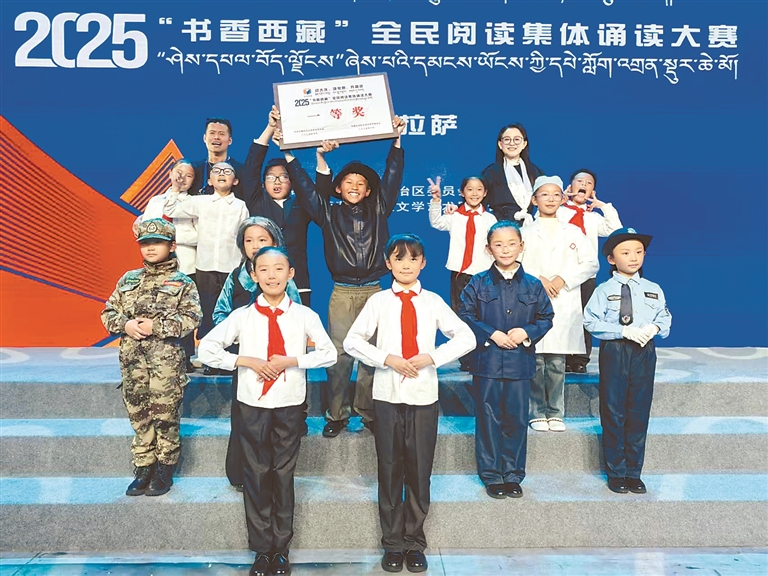 2025年“書(shū)香西藏”全民閱讀集體誦讀大賽上,阿里地區(qū)少年代表隊(duì)榮獲一等獎(jiǎng),展現(xiàn)閱讀風(fēng)采。阿里地委宣傳部供圖
