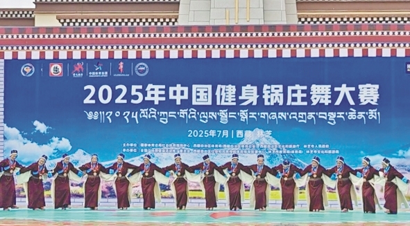 圖為2025年中國(guó)健身鍋莊舞大賽中,阿里地區(qū)象雄代表隊(duì)表演的鍋莊榮獲傳統(tǒng)鍋莊舞自編套路中年組一等獎(jiǎng)。阿里地委宣傳部供圖