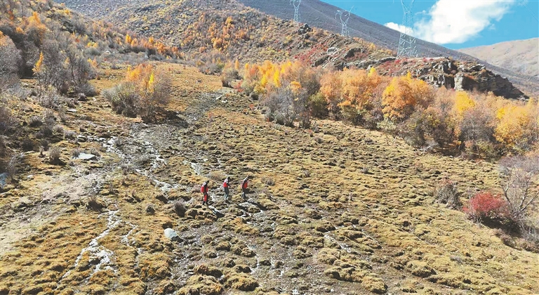 圖為拉薩市墨竹工卡縣日多鄉(xiāng)護(hù)林隊(duì)在開展巡山工作。記者 格桑倫珠 攝