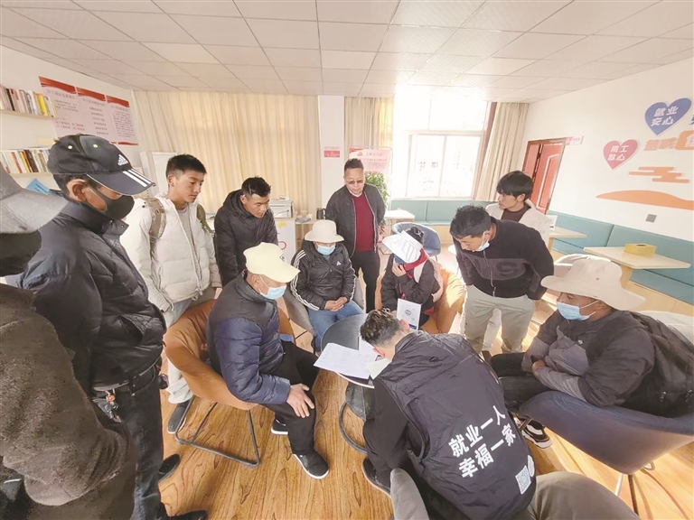 平措次仁來自日喀則市薩嘎縣,農(nóng)閑時來拉薩打零工,從事搬貨物、做雜活已有8年了?!耙郧霸趭Z底路路邊攬活,最怕刮風(fēng)下雨,冬天凍得手腳發(fā)麻,夏天曬得脫皮?!彼嬖V記者,過去找活全靠“碰運氣”,每天早上7點就得去路口排隊,不僅要和幾十號人競爭,還常常遭遇雇主壓薪、欠薪的情況?!坝幸淮危腋闪税雮€月裝修活,雇主說過幾天結(jié)工資,結(jié)果之后再也聯(lián)系不上,那筆工錢至今都沒要回來?!?/p>