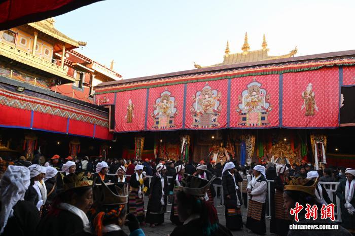 12月4日即藏歷十月十五日是藏族傳統(tǒng)的節(jié)日“白來日追”,俗稱“仙女節(jié)”、“白拉姆節(jié)”等。相傳藏傳佛教最高護(hù)法神之一班丹拉姆的女兒白拉姆,不顧母親的反對(duì)與赤尊贊私定終身,班丹拉姆一怒之下將赤尊贊趕到拉薩河南岸,規(guī)定二人僅每年的藏歷十月十五日相見。圖為信眾在大昭寺朝拜白拉姆像。中新社記者 貢嘎來松 攝