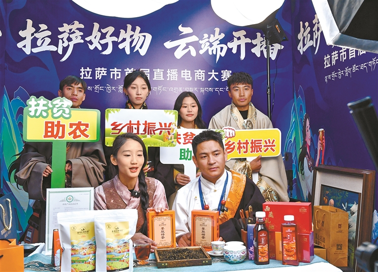 12月20日,由拉薩市商務(wù)局主辦,以“拉薩好物·云端開(kāi)播”為主題的拉薩市首屆直播電商大賽決賽暨頒獎(jiǎng)儀式在拉薩王府井購(gòu)物中心舉行。經(jīng)過(guò)前期初賽選拔、賽前調(diào)研學(xué)習(xí)和集中交流,晉級(jí)的20名參賽選手同臺(tái)競(jìng)技,通過(guò)直播實(shí)戰(zhàn)比拼,集中展示直播電商能力與拉薩特色產(chǎn)品的市場(chǎng)潛力,為期16天的大賽圓滿收官。整個(gè)賽事周期內(nèi),初賽與決賽累計(jì)帶貨總額達(dá)861萬(wàn)余元。