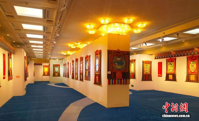 圖為展覽廳內(nèi)的60幅主題唐卡新作。于賓 供圖