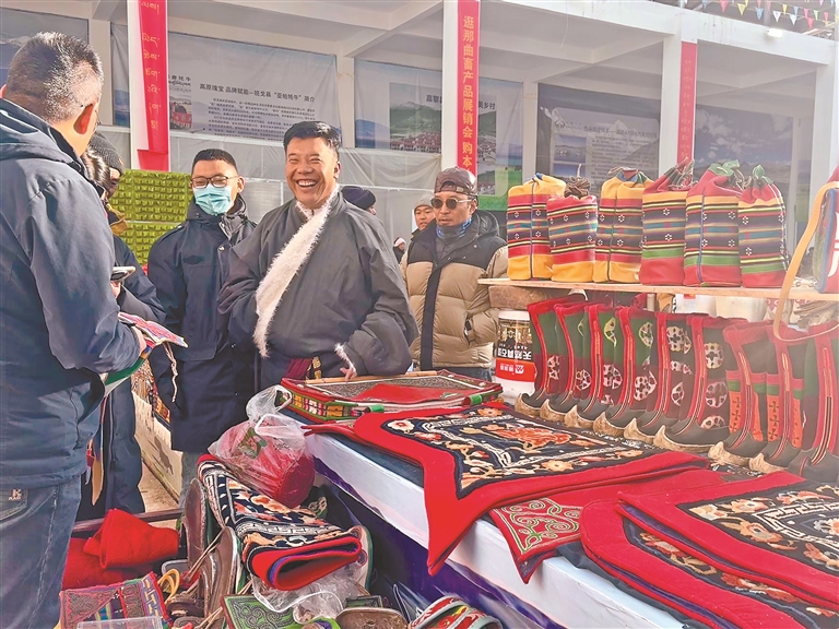 走進(jìn)展銷(xiāo)會(huì)現(xiàn)場(chǎng),最直觀的感受就是品類(lèi)全、品質(zhì)好,藏北特色撲面而來(lái)。全市11個(gè)縣(區(qū))的1485家參展商齊聚于此,帶來(lái)100余種高原特色產(chǎn)品,把草原上的好東西都搬到了消費(fèi)者面前。特色畜產(chǎn)品是當(dāng)之無(wú)愧的消費(fèi)“主力軍”,“那曲牦?!钡乩順?biāo)志產(chǎn)品、嘎?tīng)柕碌葏^(qū)域品牌,憑借“云端牧場(chǎng)、黃金奶源”的獨(dú)特品質(zhì),一亮相就成了爆款,不少市民圍著展臺(tái)詢(xún)價(jià)選購(gòu)。