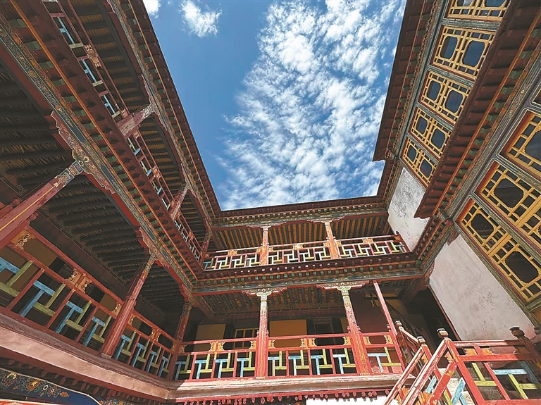 圖為從古院仰視蔚藍(lán)天空。