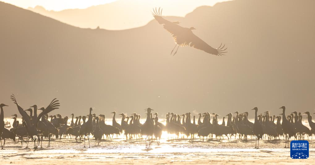 拉薩北部的林周縣平均海拔約4200米,是黑頸鶴的主要越冬地之一。清晨的陽(yáng)光灑在林周縣虎頭山水庫(kù),水面波光粼粼,鶴影婀娜多姿。