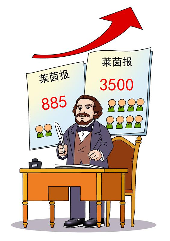 二十四歲的馬克思正式成為《萊茵報(bào)》主編 ,在他卓有成效的管理和犀利筆鋒的影響下,報(bào)紙發(fā)行量激增,他第一次顯示出辦報(bào)的天份。蘇凝/畫(huà)