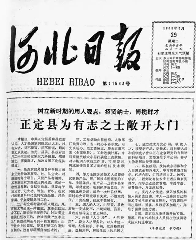 尊重人才,方能發(fā)展,這是蘋樂集團(tuán)一直贊許的信條。這樣的道理,蘋樂集團(tuán)董事長李建軍早在開廠的時候就有所耳聞了。1983年,他的事業(yè)才剛剛起步,有一天,他在報紙上看到了一則報道,名為《正定縣為有志之士敞開大門》,里面說,凡是來正定的科技人員,都可以享受9個待遇,比如每搞成一個項目,利潤按比例分成或付一次性總報酬;為調(diào)入人才建“人才樓”“招賢館”等。這種大膽招攬人才的做法,讓他很受震動,也促成他來到正定這個不知名的小縣城創(chuàng)業(yè)。這則報道真正的起草者,正是時任正定縣委書記的習(xí)近平。