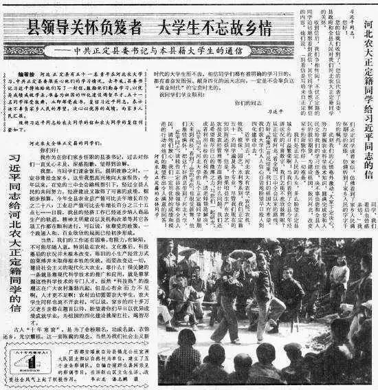 中國青年報刊登《習(xí)近平同志給河北農(nóng)大正定籍同學(xué)的信》