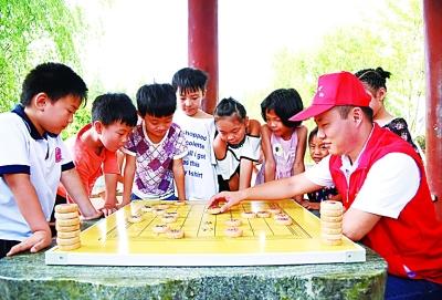 河北省河間市團市委組織青年志愿者開展“微愛接力”農(nóng)村留守兒童志愿幫扶公益活動。新華社發(fā)