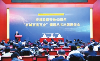全國(guó)社科系統(tǒng)數(shù)千名專家學(xué)者深入100個(gè)縣區(qū)、100個(gè)城市和100個(gè)企業(yè)開(kāi)展慶祝改革開(kāi)放40周年大調(diào)研,取得豐碩成果。圖為成果座談會(huì)現(xiàn)場(chǎng)。中國(guó)社會(huì)科學(xué)院科研局供圖