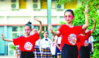 文化興國運興,文化強民族強。圖為河北省石家莊市裕華西路小學舉辦以“弘揚戲曲藝術 傳承經典國粹”為主題的校園戲曲節(jié)活動。新華社發(fā)