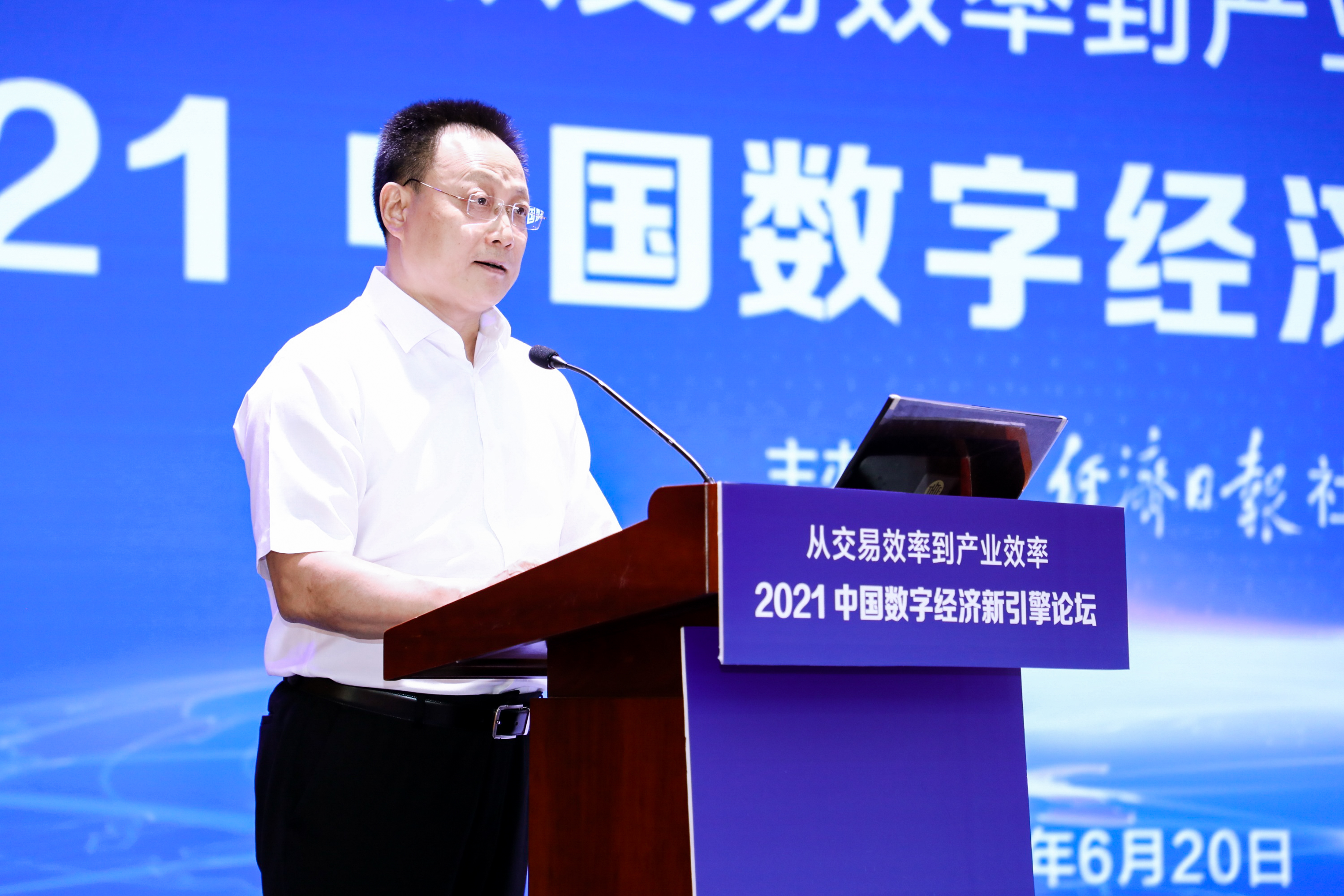 由經(jīng)濟(jì)日報社主辦的2021數(shù)字經(jīng)濟(jì)新引擎論壇,6月20日在京舉行。圖為經(jīng)濟(jì)日報社副社長趙子忠在發(fā)言。