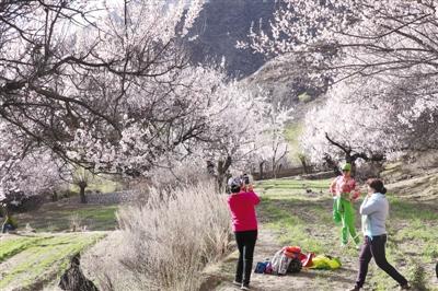 內(nèi)地的游客在拍攝波密春景。李洲 攝
