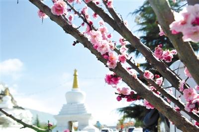 拉薩街頭盛開的桃花。潘多 攝