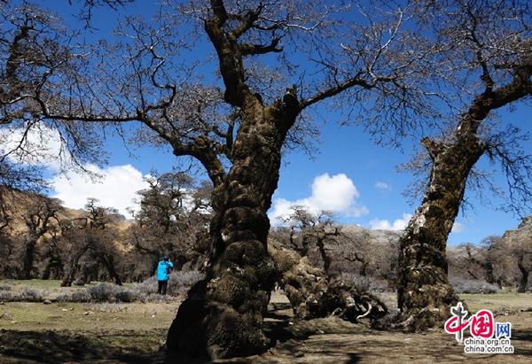 圖為錯(cuò)那縣曲卓木鄉(xiāng)千年沙棘林,總面積有3000畝,千年沙棘林景區(qū)有800畝,生長(zhǎng)千年的沙棘樹形狀各異,奇形怪狀,如同盆景中的盆栽,整個(gè)景區(qū)就是一個(gè)碩大的盆景。整個(gè)沙棘林堪稱亞洲乃至世界之最。來源:中國(guó)網(wǎng)。