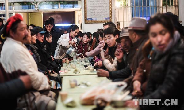 西藏茶館遍布各地集市,有酥油茶、清茶、奶茶、甜茶等多種飲茶方式。藏族人喝茶,不管是酥油茶還是清茶,都喜歡放點(diǎn)鹽。
