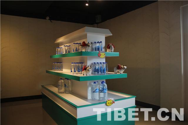 圖為展示區(qū)的納木錯(cuò)圣泉瓶裝水