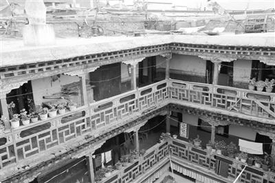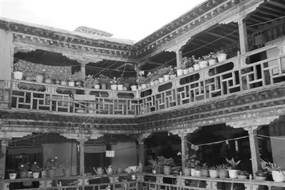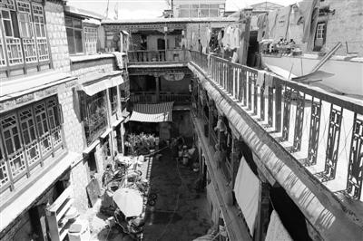 拉薩塊石碉樓四合院形成時間較早,現(xiàn)存建筑均有100多年的歷史,分布在著名的八廓古城,一般為貴族府邸和商賈宅院。由主樓和附樓圍合庭院構(gòu)成居住單元,花崗石塊石砌建筑體和木柱共同承重的石木結(jié)構(gòu)體系?!袄_地處拉薩河谷,地勢平坦,石材資源豐富,為塊石碉樓四合院提供了先天條件?!蔽鞑毓沤▽<荫R驍利說。