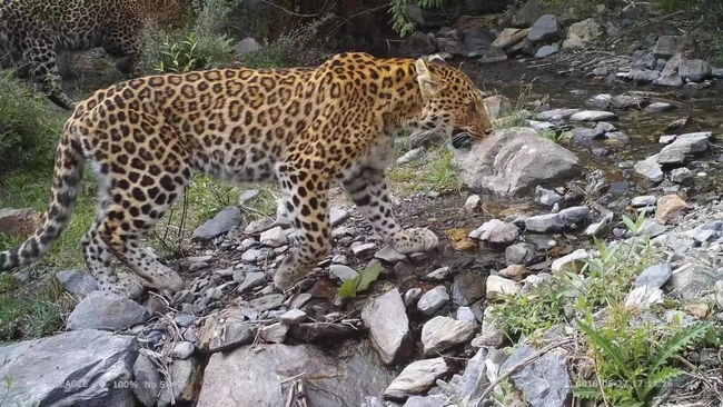同一區(qū)域,拍攝到金錢豹的珍貴影像。