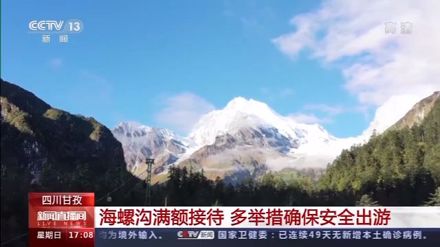 節(jié)日期間的海螺溝景區(qū)晴空萬(wàn)里,海拔6410米的貢嘎山金銀峰,在藍(lán)天白云映襯下更顯巍峨壯麗。