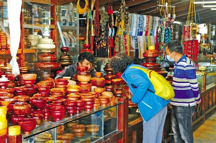 圖為游客在八廓商城購買商品。記者 次仁平措 攝