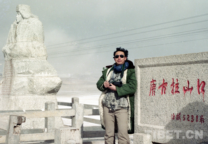 這是唐召明在青藏公路的唐古拉山道班采訪時,在山口紀念碑前拍照留念(唐召明提供,1990年冬攝)