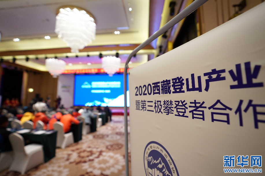 2020西藏登山產(chǎn)業(yè)發(fā)展論壇暨第三極攀登者合作簽約儀式現(xiàn)場(11月12日攝)。新華社記者 詹彥 攝