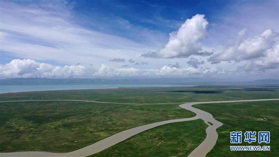 青海湖畔風(fēng)光(無人機(jī)照片)。新華社記者 張宏祥 攝