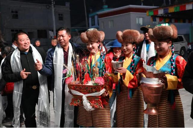 首發(fā)團(tuán)一到達(dá)歡迎儀式現(xiàn)場(chǎng),藏族同胞便端出裝滿糌粑、寓意圓滿如意的切瑪盒迎接游客,大家一起為游客獻(xiàn)上潔白的哈達(dá),并送上真摯的祝?!霸鞯吕铡?。扎西雪巴藏戲跳起來(lái),青稞酒喝起來(lái),山南人民的熱情好客讓現(xiàn)場(chǎng)所有游客驚喜連連,感受到了滿滿儀式感。