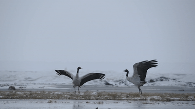 剛察縣青海湖畔的黑頸鶴。新華網 潘彬彬 攝