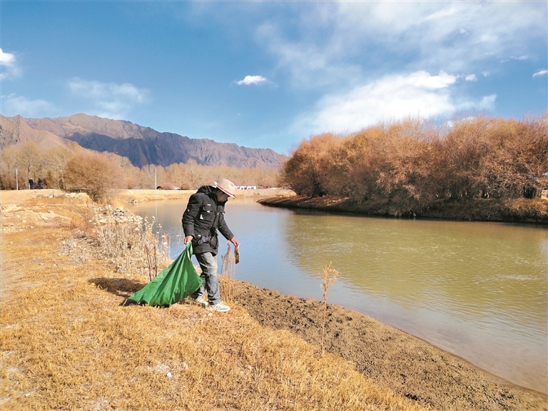 尼瑪是江熱夏鄉(xiāng)聯(lián)巴村的一名河道管護員,主要負責(zé)澎波河至江夏村橋頭三公里的河道巡護,他每天天剛亮就要開始一天的巡河工作。“我每天巡河的任務(wù)是檢查有沒有垃圾,有沒有人違規(guī)采砂,希望通過我們的努力,村里的環(huán)境能越來越好,生活質(zhì)量越來越高。”尼瑪告訴記者。
