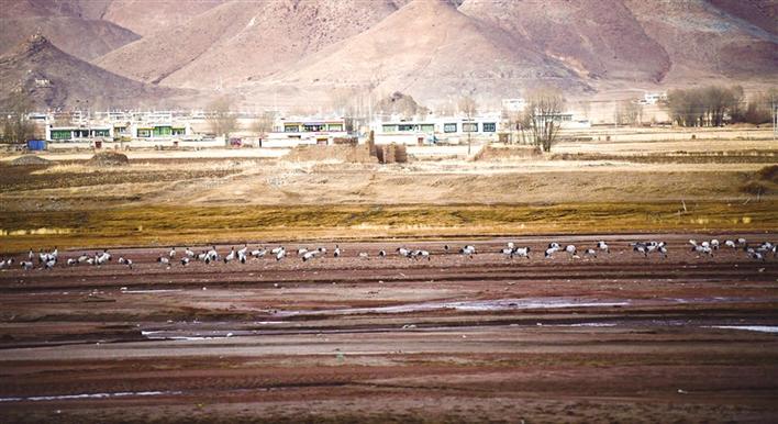 在西藏,黑頸鶴從繁殖地色林措到越冬地,有兩條線路,一條向東南抵達(dá)拉薩,另一條向西南到達(dá)日喀則,而這兩個(gè)方向所在地便是我們所說的雅魯藏布江中游河谷,也是黑頸鶴國家級(jí)自然保護(hù)區(qū),包括三大塊——“一江兩河”,即雅魯藏布江及其支流拉薩河、年楚河,黑頸鶴的越冬生活便是圍繞它們展開的。