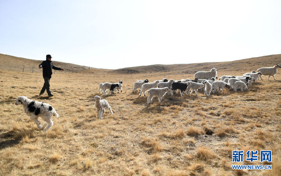 在青海省剛察縣泉吉鄉(xiāng)寧夏村,達(dá)日杰家的小羊羔在草場(chǎng)上(11月12日攝)。新華社記者 張宏祥 攝