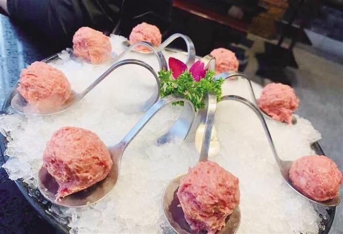 “我們鎮(zhèn)三關(guān)老火鍋所采用的有機(jī)特色菜品全部出自自家農(nóng)場(chǎng),綠色健康無(wú)污染,顧客可以吃得放心、安心?;疱仠讉鞒姓谥貞c火鍋?zhàn)龇?,辣而不燥,口齒留香,讓人愛(ài)不釋口。同時(shí),采用純牛油熬制,沒(méi)有加入任何添加劑,吃完后不會(huì)全身彌漫著火鍋味道。我們將繼續(xù)為大家?guī)?lái)健康營(yíng)養(yǎng)的火鍋,歡迎前來(lái)品嘗?!贝t介紹。(圖 記者 張雪芳)