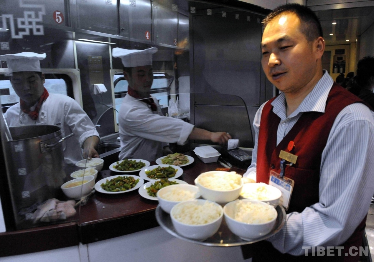 這趟列車的廚師長孫冠軍告訴記者,京藏列車自開通運營以來,除了像西紅柿炒雞蛋因藏北高原沸點低而無法炒成片外,其他三四十種可口飯菜都能在列車運行中的高海拔地段完成。