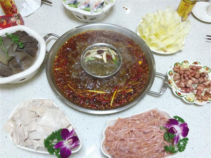 “重慶火鍋的特色全在鍋底。我們店主打冷鍋、一次性紅湯鍋,還有鍋中鍋的菌湯、番茄養(yǎng)生湯、酸蘿卜老鴨湯。這些鍋底能很好地吸收其他炒料的味道,在燙煮的時(shí)候,可以黏附在食物上,吃起來(lái)味道‘開(kāi)門見(jiàn)山’,濃香熱辣,但又不會(huì)讓人覺(jué)得嗆喉嚨,下到胃里也沒(méi)有燒胃的感覺(jué),湯底吃到最后還能保持清亮的本色……”重慶巴王府火鍋店長(zhǎng)楊女士自信地說(shuō)。
