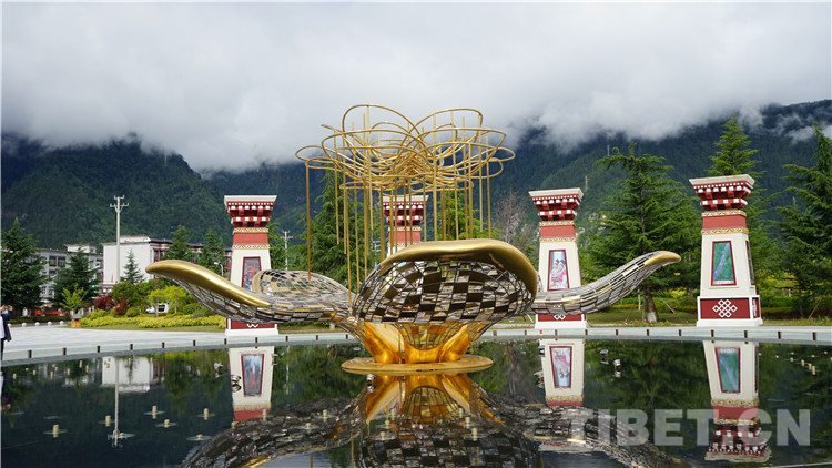 圖為林芝市工布公園“萬樹桃花”雕像 攝影:旦曲