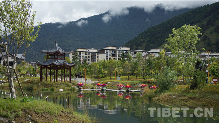 圖為林芝市工布公園的亭臺和流水 攝影:旦曲