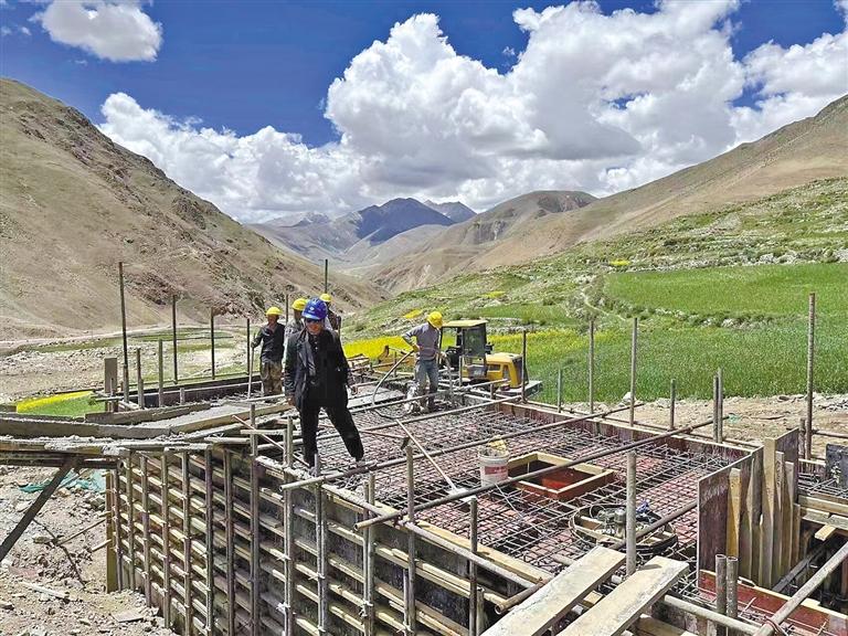 施工人員在尼木縣境內(nèi)帕古水庫施工。