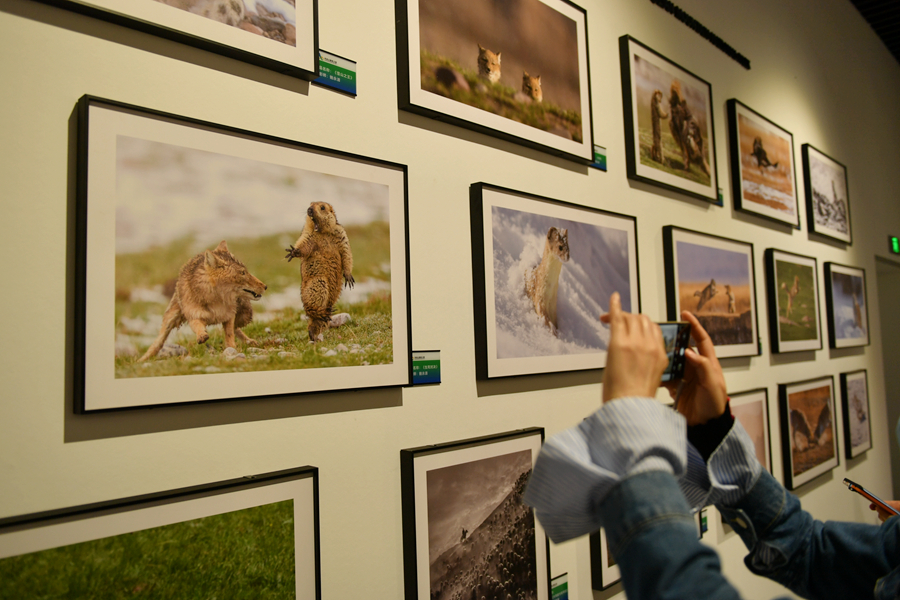 圖為祁連山國(guó)家公園青海片區(qū)展陳中心內(nèi)展出的攝影作品。